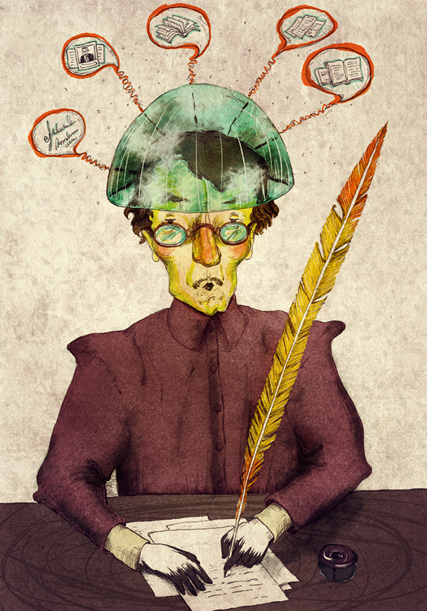 Всё повторится, будто не бывало В лицо кидает взор пустой страницей, Сосуды глаз раскрашивая в алый, Текст, непочатый край работы для ленивца, А для писателя отрада неземная! Какого чёрта вы взираете сурово? Какого дьявола смеётесь — я не знаю! Напомню: я поэт, невольник слова!